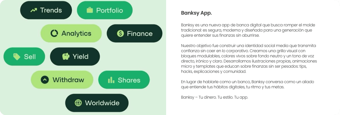 Creemos que nuestro trabajo habla por nosotros. Puedes ver una selección de nuestros proyectos más recientes en la sección Portafolio, donde mostramos cómo hemos ayudado a otras marcas a subir de nivel.